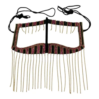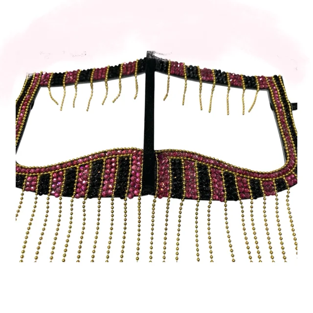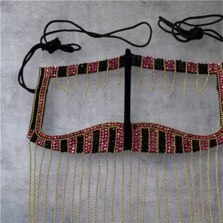 برقع دختر بندری پارچه مشکی با نگینهای طلایی و آب