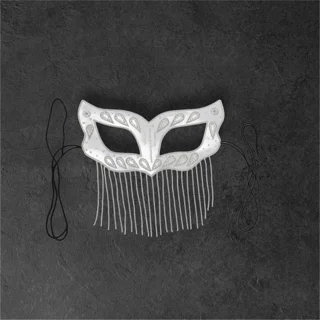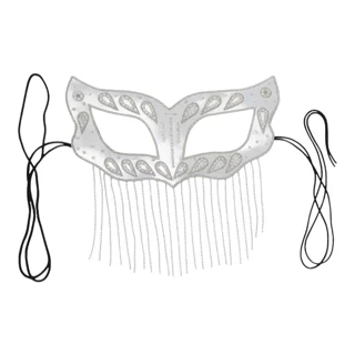 این برقع فانتزی با طراحی براق و چشمگیر، از جنس متالیک ساخته شده و روی آن نگینهای نقرهای درخشان با طرحهای قطرهای ظریف کار شده است. در بخش پایینی، رشتههای زنجیری نقرهای آویزان است که با حرکت، جلوهای خاص ایجاد میکند. این برقع با بندهای مشکی قابل تنظیم بسته میشود و برای جشنها، مراسم، عکاسی و استایلهای خاص انتخابی زیبا و متفاوت است. این محصول سبک، راحت و مناسب استفاده طولانیمدت بوده و جلوهای لوکس و جذاب به چهره میدهد