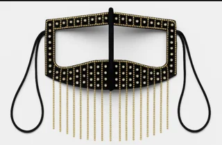 نقاب بندری فولنگین، انتخابی جذاب و چشمگیر برای علاقهمندان به سبکهای اصیل و سنتی است. این محصول با پارچه مشکی با کیفیت ساخته شده و تمام سطح آن با نگینهای مشکی و تعدادی نگین نقرهای درخشان تزئین شده است که جلوهای خاص و متفاوت ایجاد میکند.